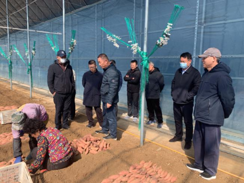李爱贤研究员一行现场听取了崮山镇甘薯产业发展规划,参观了公司综合服务中心、甘薯脱毒实验室、甘薯温室育苗和种薯贮藏库,与基地负责人就甘薯脱毒快繁设施设备高效运用、如何提高大棚育苗的出苗率、脱毒种薯安全贮藏、甘薯健康种苗生产繁育体系建设等方面的问题进行了深入交流与探讨。省薯类产业技术体系两岗位准备为公司引进一批甘薯新品种和健康种苗,与原有品种进行对比试验,筛选适合当地种植、符合市场需求的优质鲜食甘薯品种;同时,提出为公司提供南方客源,解决公司每年3、4月份和6月份当地非栽插季节订单不足、甘薯种苗过剩的问题。